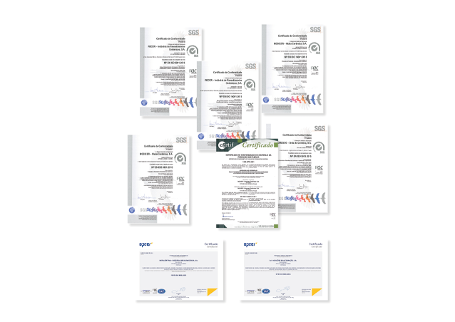 Estas certificações atestam a qualidade dos nossos produtos e serviços, bem como o compromisso das nossas empresas com a sustentabilidade ambiental.